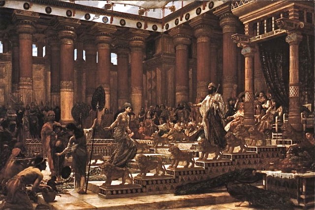 1 “When the queen of Sheba heard of Solomon’s fame, she came to Jerusalem to test him with hard questions. Arriving with a very great caravan—with camels carrying spices, large quantities of gold, and precious stones—she came to Solomon and talked with him about all she had on her mind. 2 Solomon answered all her questions; nothing was too hard for him to explain to her. When the queen of Sheba saw the wisdom of Solomon, as well as the palace he had built, 4 the food on his table, the seating of his officials, the attending servants in their robes, the cupbearers in their robes and the burnt offerings he made at the temple of the LORD, she was overwhelmed.”